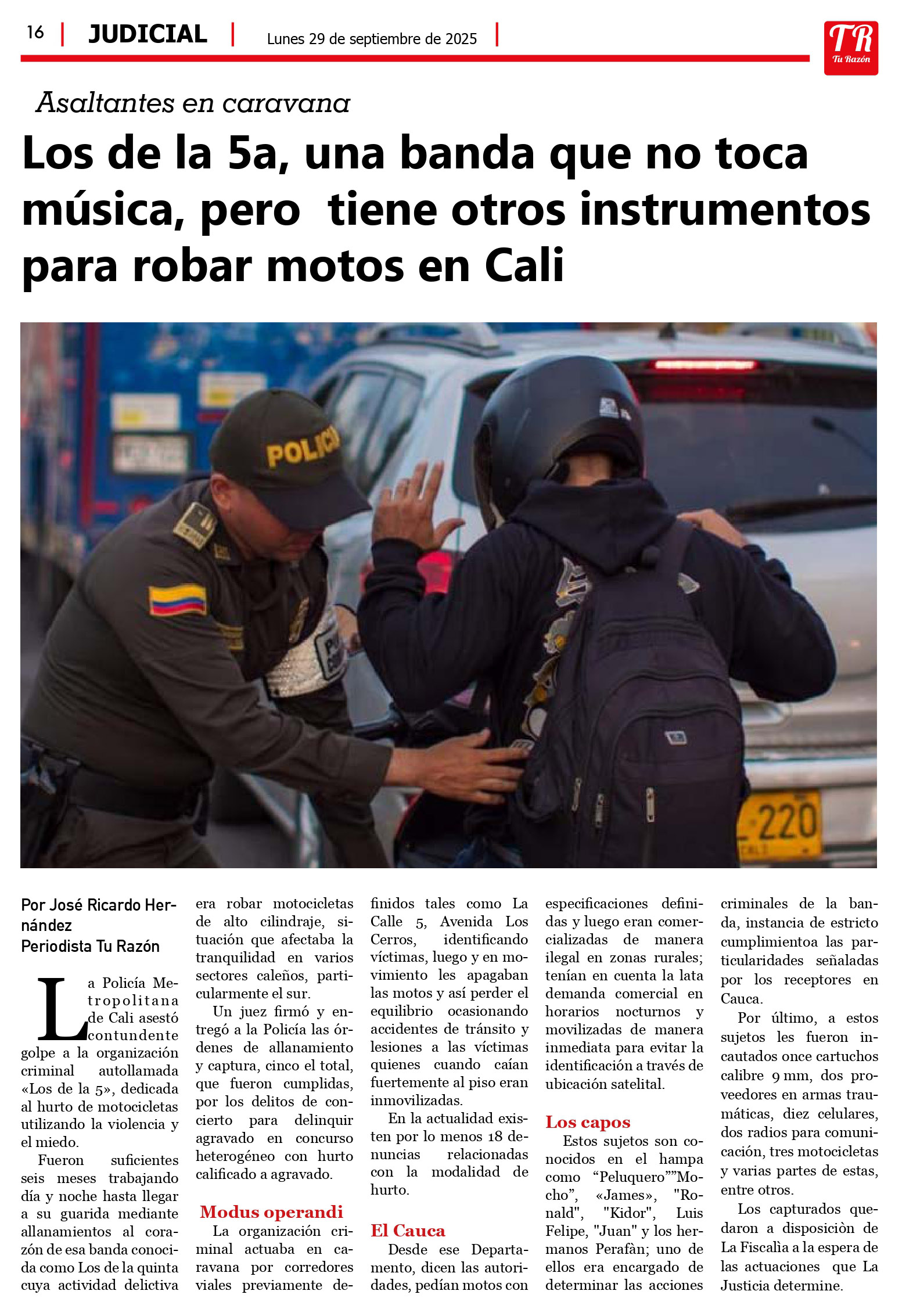 Policía capturó banda de Los de la 5ta, Tu Razón, 29092025