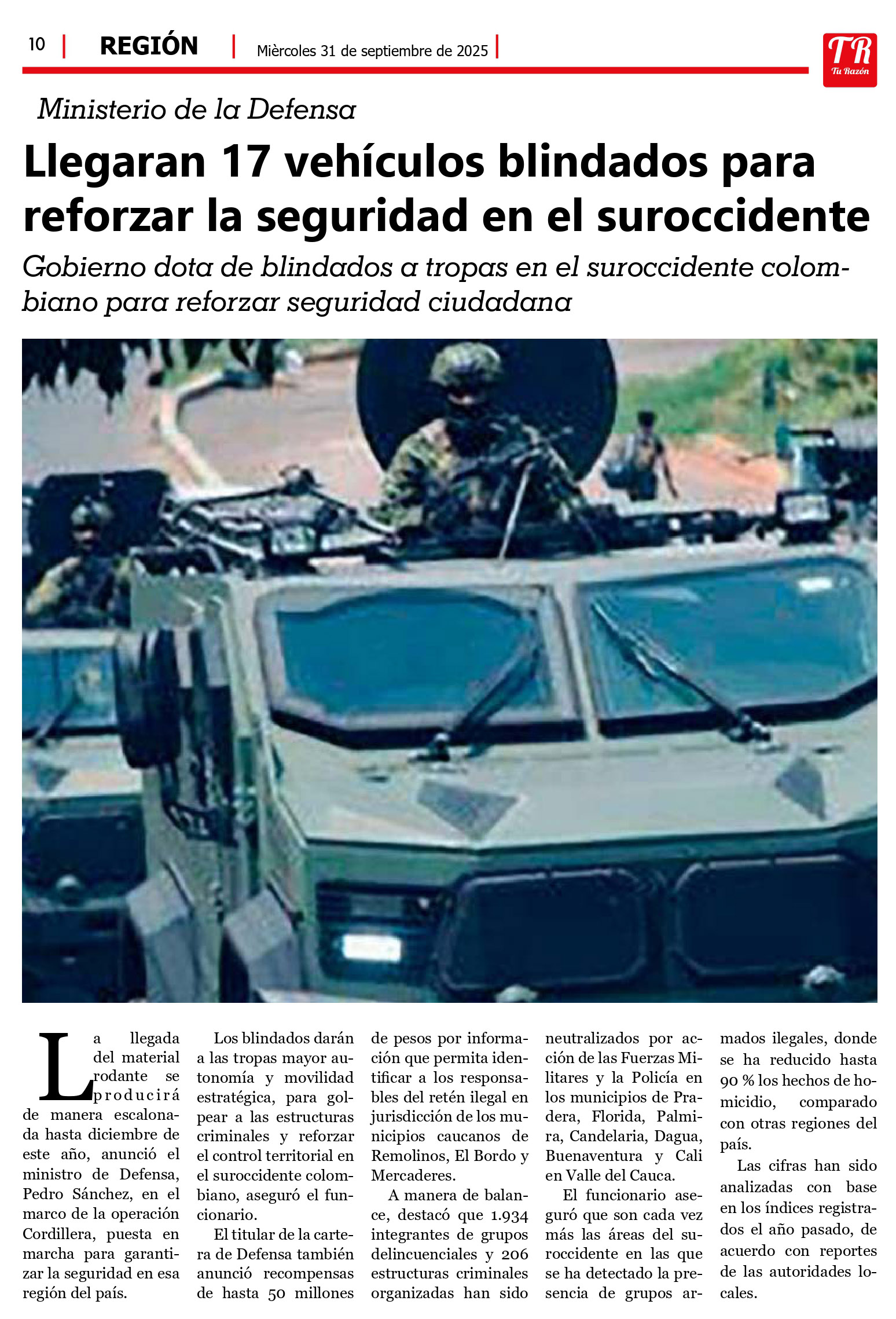 Llegarán 17 vehículos blindados para reforzar la seguridad, Tu Razón
