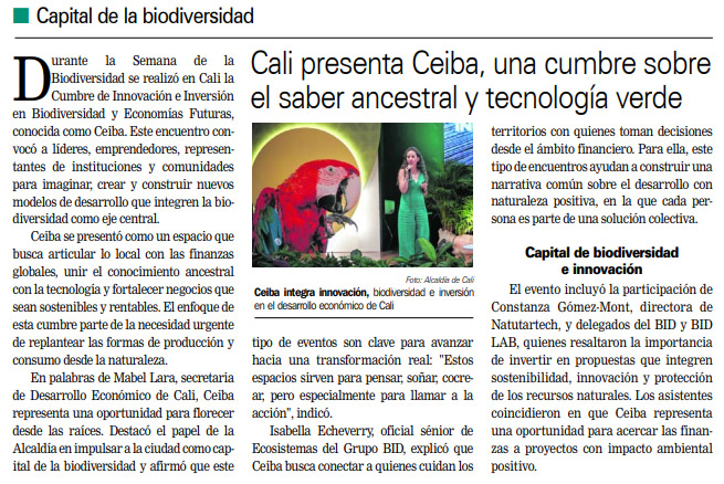 Durante la Semana de la Biodiversidad se realizó en Cali la Cumbre de Innovación e Inversión en Biodiversidad y Economías Futuras, conocida como Ceiba.