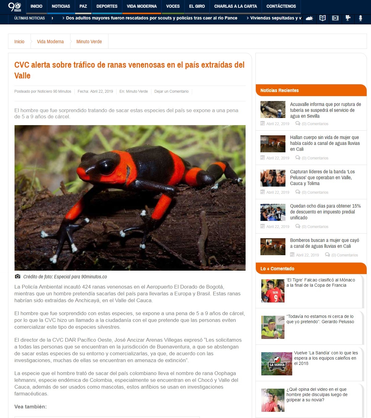 CVC ALERTA POR TRÁFICO DE RANAS VENENOSAS EXTRAIDAS DEL VALLE DEL CAUCA