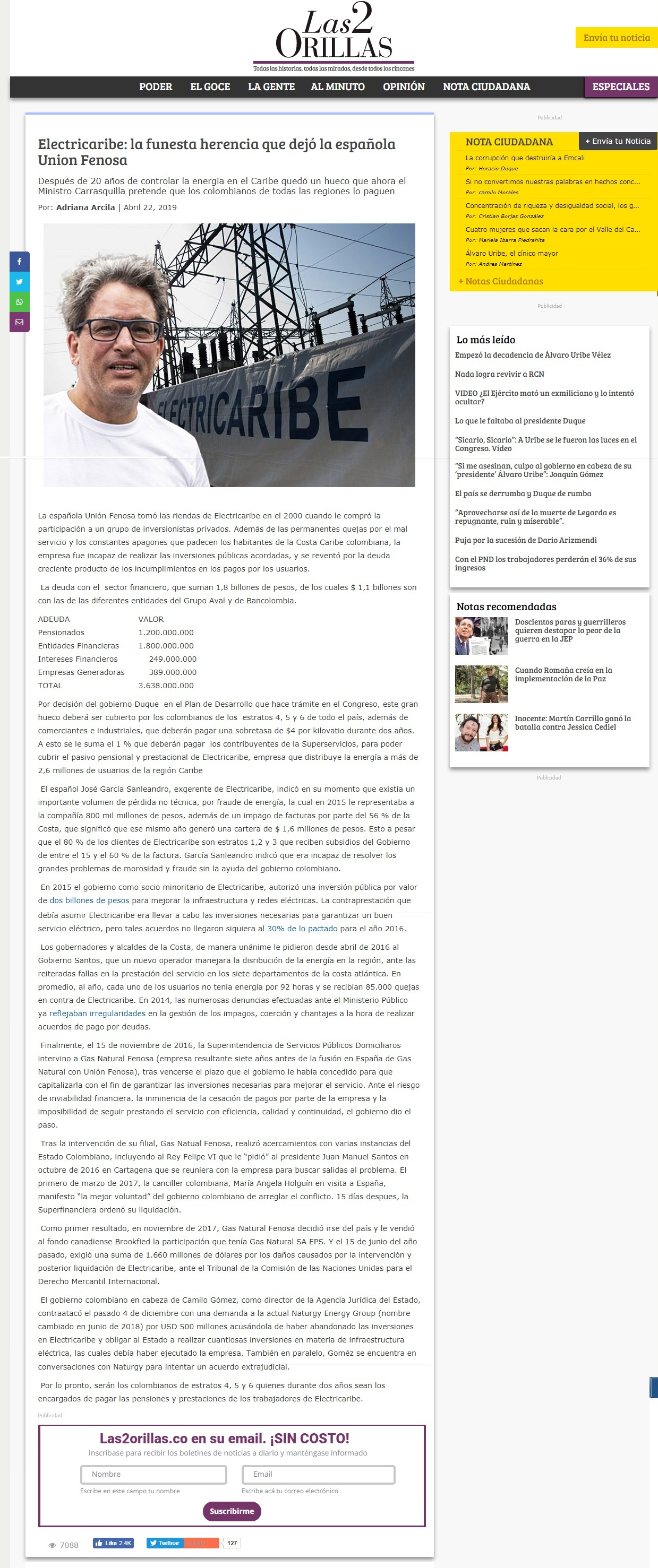 ELECTRICARIBE-LA FUNESTA HERENCIA QUE DEJÓ UNIÓN FENOSA Y AHORA DEBMOS PAGAR LOS COLOMBIANOS