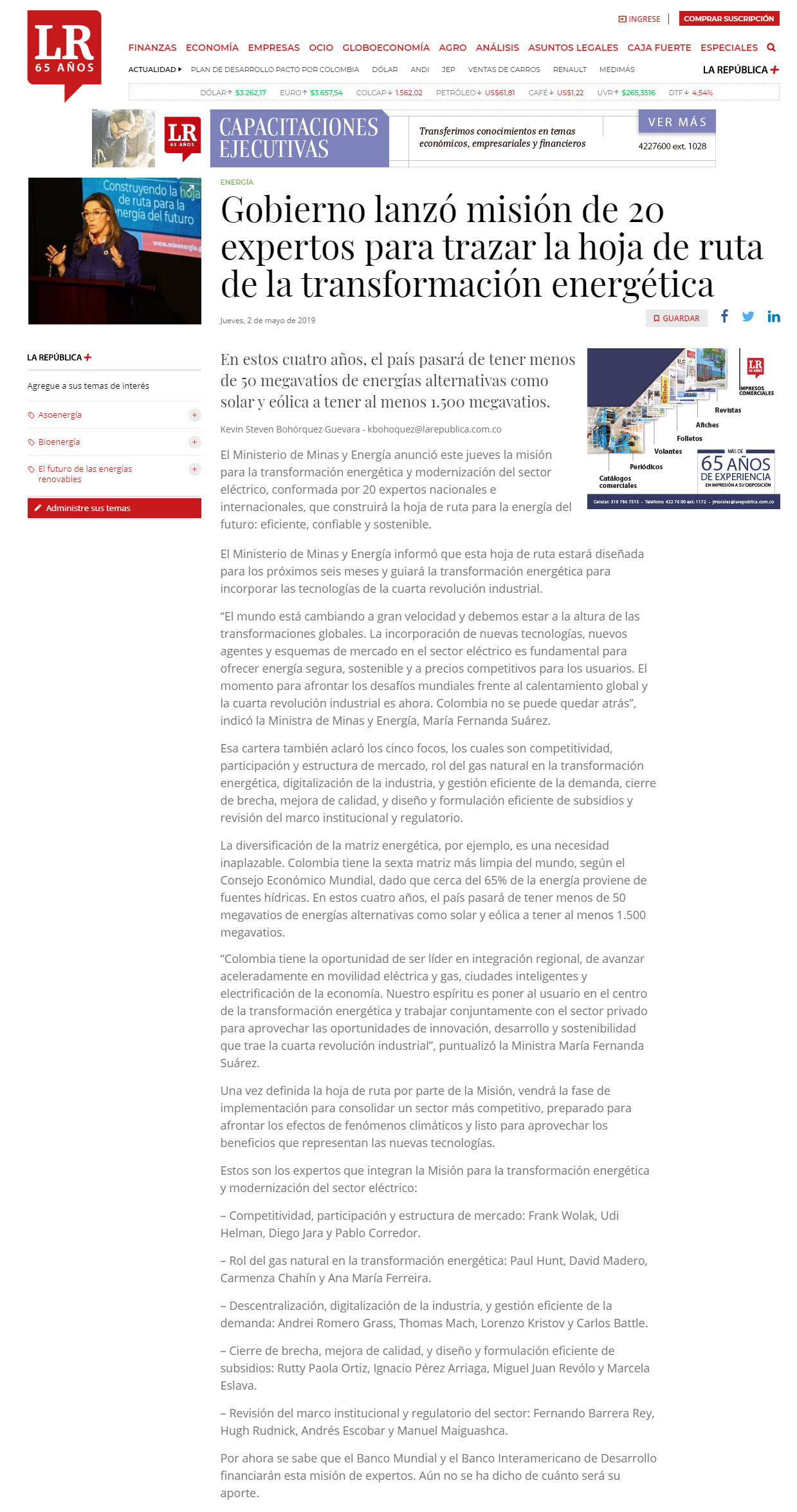 GOBIERNO LANZO MISION DE 20 EXPERTOS PARA LA TRANSFORMACION ENERGETICA, LAREPUBLICA CO