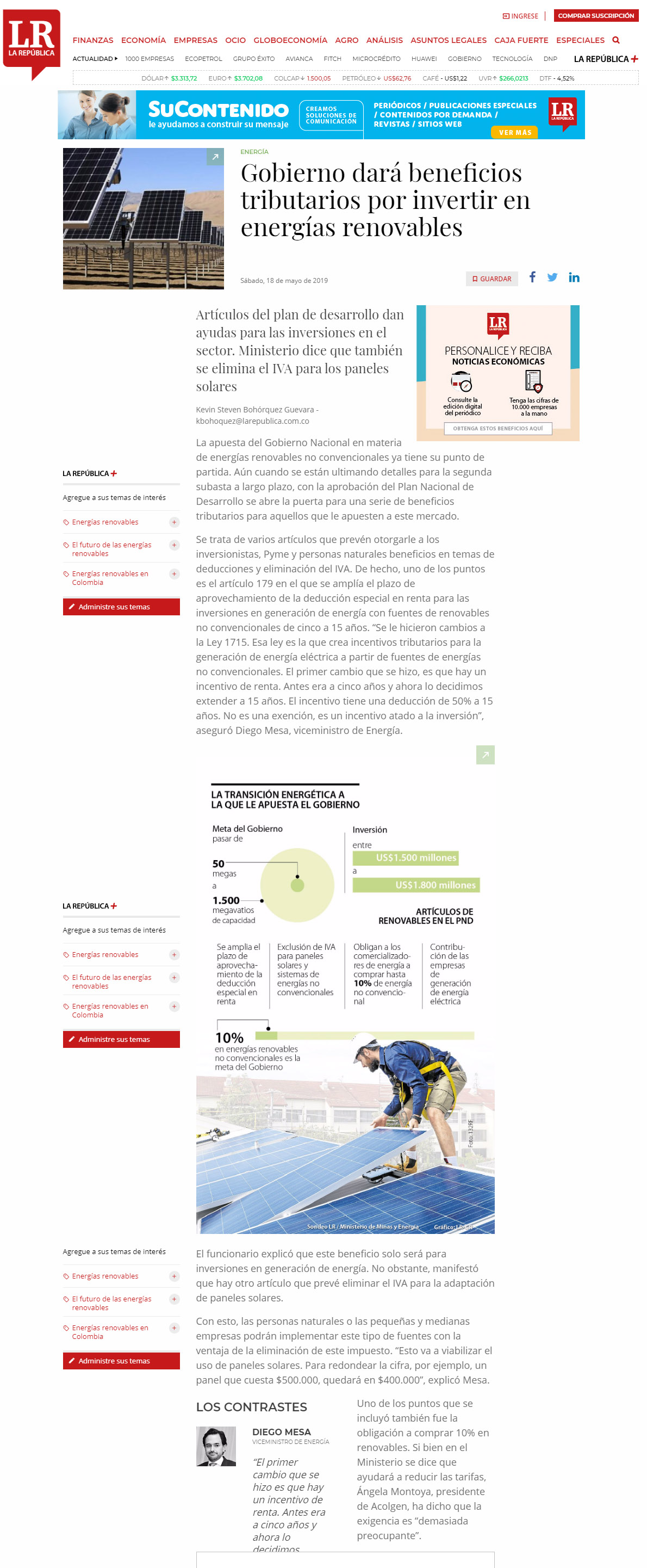 GOBIERNO DARA BENEFICIOS TRIBUTARIOS POR INVERTIR EN ENERGIAS RENOVABLES, LAREPUBLICA CO