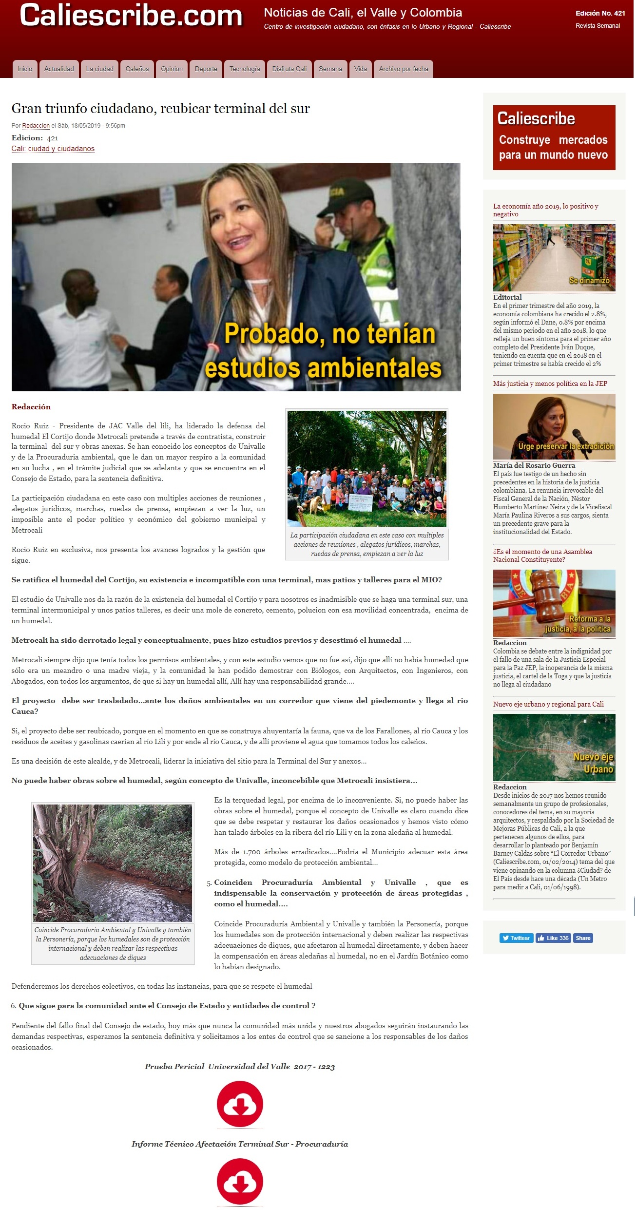 METROCALI NO TENÍA ESTUDIOS AMBIENTALES DE TERMINAL SUR