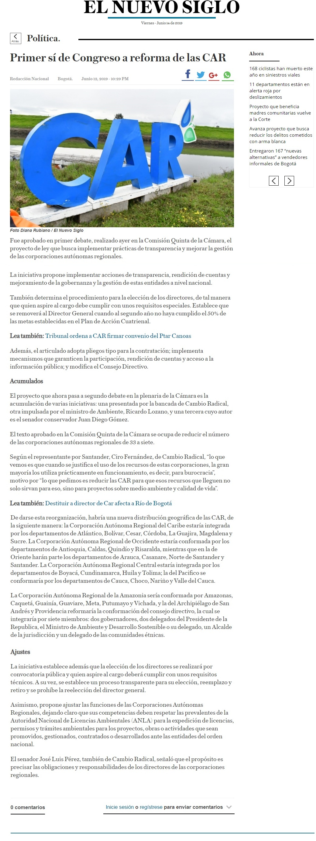 APROBADO EN PRIMER DEBATE REFORMA A LAS CAR