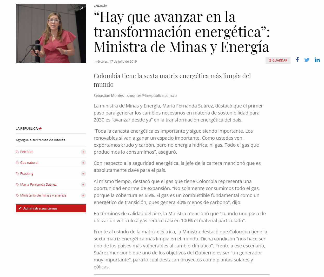 HAY QUE AVANZAR EN LA TRANSFORMACIÓN ENERGÉTICA, MINMINAS, LAREPUBLICA CO