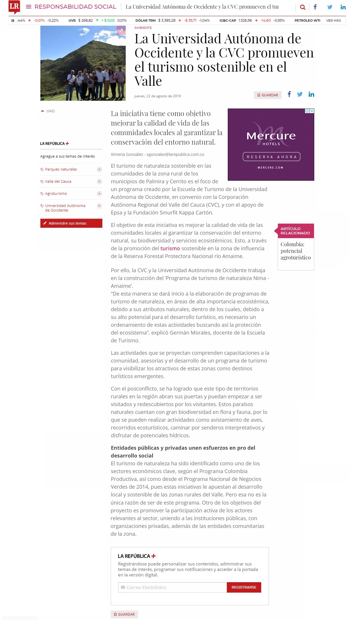 CVC, EPSA Y UAO APOYAN PROGRAMA DE TURISMO DE NATURALEZA