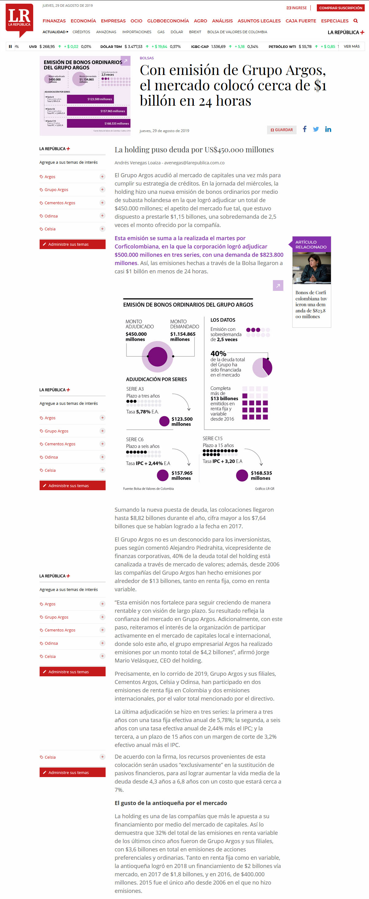CON EMISIÓN DE GRUPO ARGOS EL MERCADO COLOCÓ CERCA DE $1BILLÓN EN 24HORAS, LAREPUBLICA CO