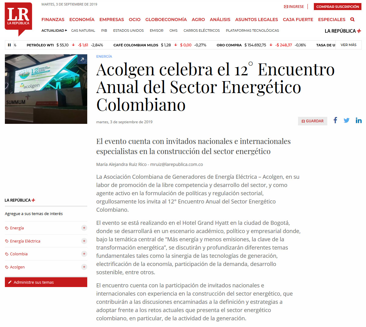 ACOLGEN CELEBRA EL 12VO ENCUENTRO ANUAL DEL SECTOR ENERGÉTICO, LAREPUBLICA CO